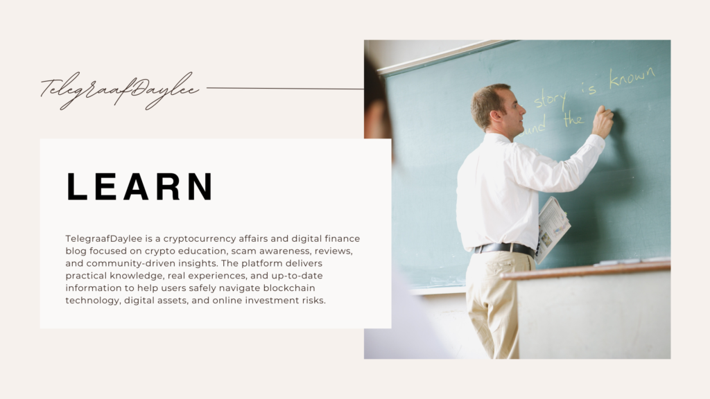 TelegraafDaylee is a cryptocurrency affairs and digital finance blog focused on crypto education, scam awareness, reviews, real stories, and community-driven insights. The platform delivers practical knowledge, real experiences, and up-to-date information to help users safely navigate blockchain technology, digital assets, and online investment risks.